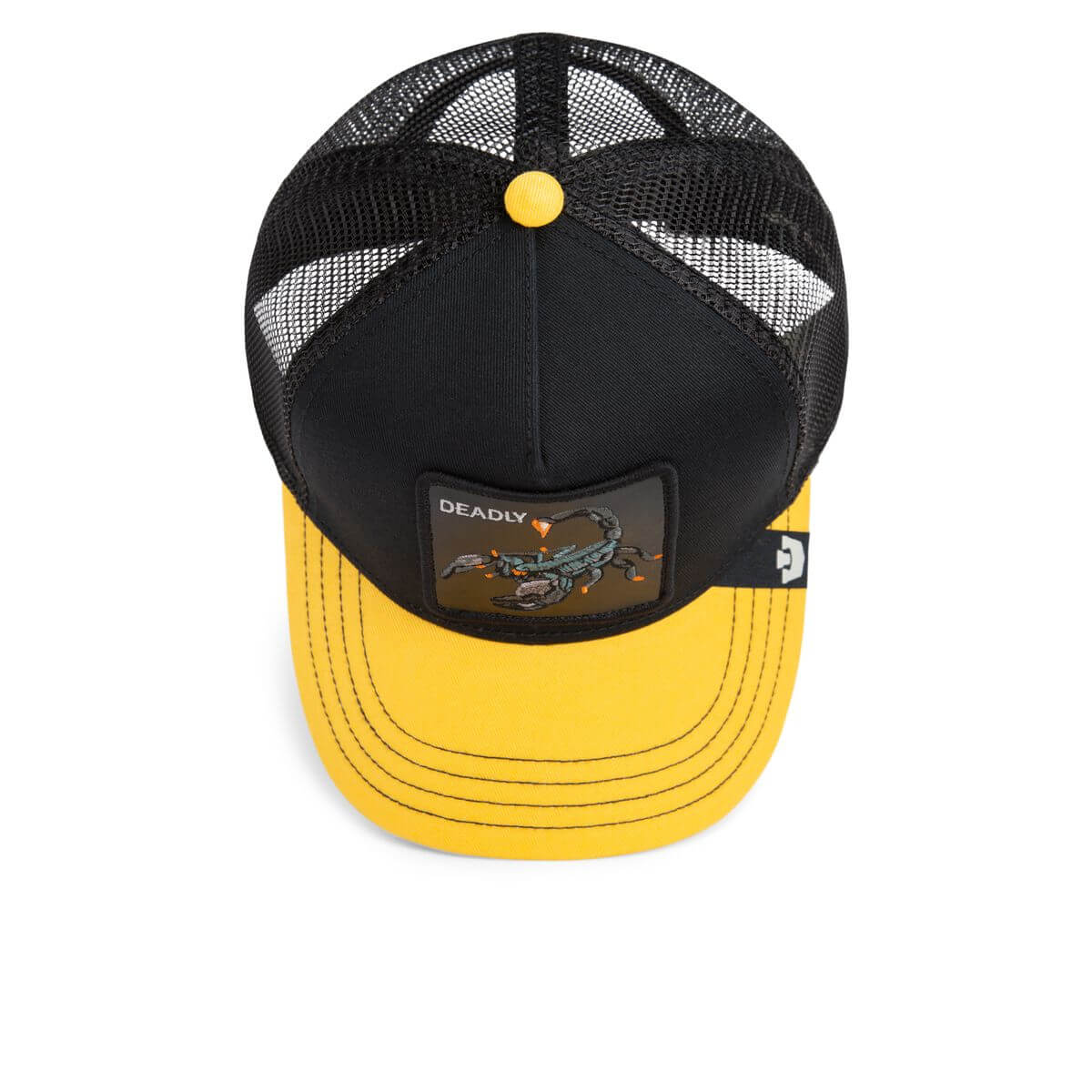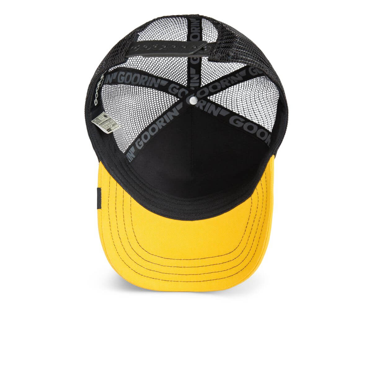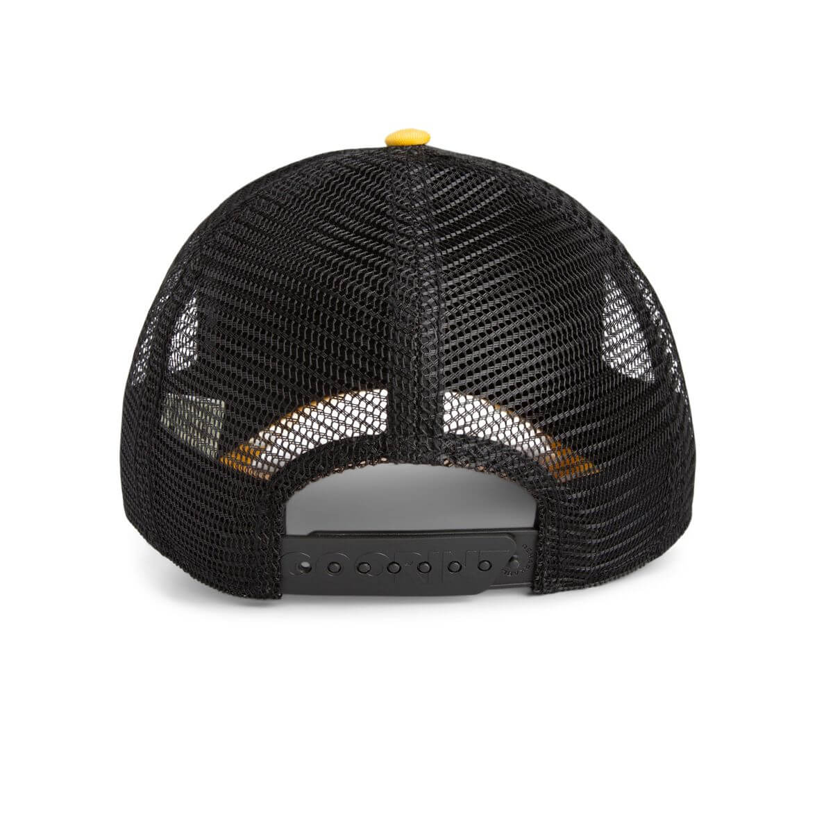 nVibráló design: Fekete pamutvászon előlap és háló, amit a sárga sild és a sárga gomb a sapka tetején tesz igazán dinamikussá.