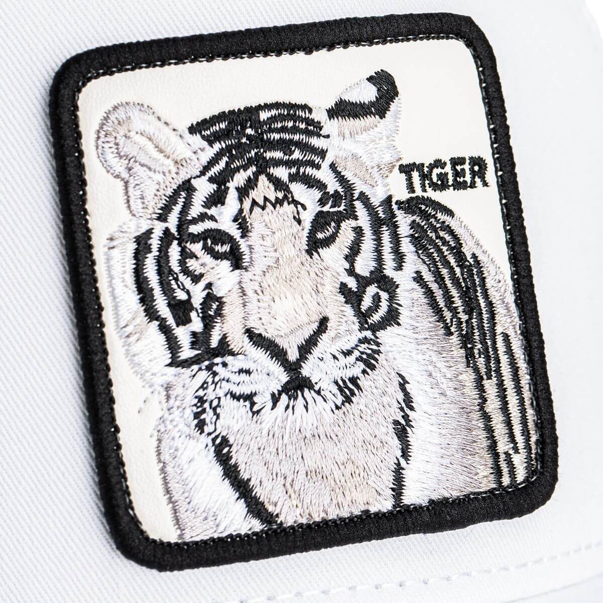 n nHímzett felvarró: Az elülső panelen egy fenséges fehér tigris látható, finom szürke és fekete árnyékolással, valamint a klasszikus “Tiger” felirattal.